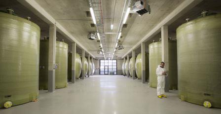 Windstrom wird in die mit einer Vanadium-Elektrolytlösung gefüllten 45.000-Liter-Tanks eingeleitet – mit 20 MWh ist der Ende März in den Testbetrieb gehende Gigant voll geladen – genug, um ein ganzes Dorf zehn Stunden lang zu versorgen. Wichtige Komponente des 19 Millionen Euro-Projekts „RedoxWind“ ist eine 2 MW leistende Windenergieanlage neben dem neuen Institutsbau.