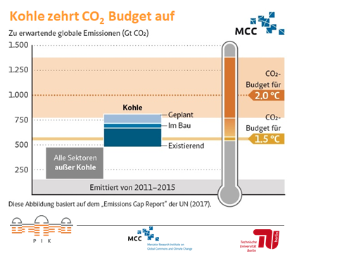 Kohle zehrt CO2-Budget auf – Grafik © Ottmar Edenhofer, PIK, MCC, TUM