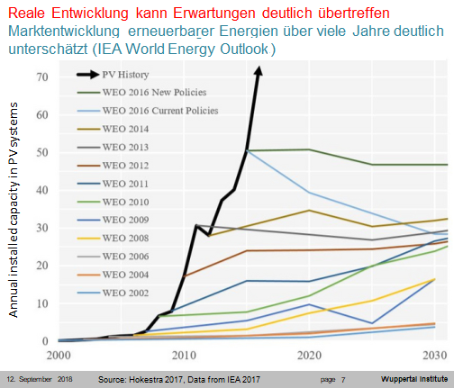 PV-Ausbau übertraf Erwartungen – Grafik © Manfred Fischedick, Wuppertal-Institut
