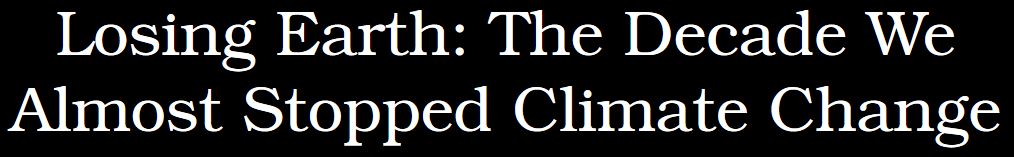 Die Klimakatastrophe, die wir jetzt erleben, hätte verhindert werden können (so die Internetseite des Rowohlt-Verlags über Nathaniel Richs Buch „Losing Earth“): Vor dreißig Jahren gab es die Chance, den Planeten zu retten – doch sie wurde verspielt. Nathaniel Rich schildert in „Losing Earth“ (nach langdauernder Recherche am 01.08.2018 im Magazin der New York Times veröffentlicht), wie es zu diesem wahrhaft globalen Versagen kam. Wir folgen einer Gruppe von Wissenschaftlern, Aktivisten und Politikberatern rund um den Umweltlobbyisten Rafe Pomerance und den Nasa-Forscher James Hansen, die Ende der siebziger Jahre erstmals erkennen, dass sich die Erderwärmung desaströs beschleunigt, aber auch, was dagegen zu tun ist – beinahe alles, was wir heute darüber wissen, stammt aus dieser Zeit. Rich schildert ein Jahrzehnt erbitterter Kämpfe um Öffentlichkeit, Anerkennung, politische Maßnahmen – und wie diese 1989, kurz vor dem Durchbruch, tragisch scheitern.