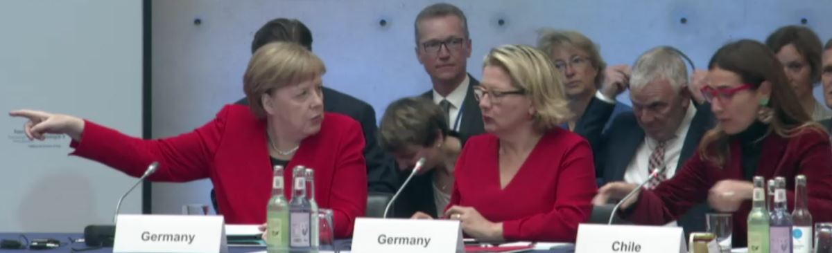 Zeigt die Kanzlerin (immer noch) wo’s lang geht? – X. Petersberger Klimadialog mit Merkel, Schulze und Schmidt (Chile) – Screenshot © Livestream Internet, BMU
