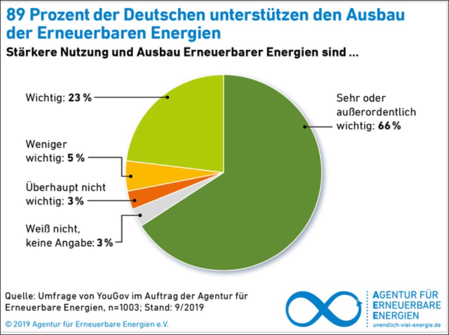 Akzeptanzumfrage 2019 – Unterstützung Ausbau – Grafik © Agentur für Erneuerbare Energien