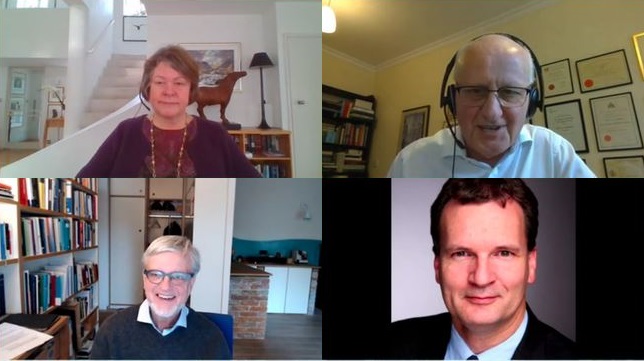 Wie Energiespeichertechnologien schnell und in großem Maßstab eingesetzt werden können, diskutierten deutsche und britische Experten auf dem virtuellen UK-DE Energy Systems Symposium. Julia Elizabeth King, John Loughhead, Ortwin Renn und Dirk Uwe Sauer – Screenshots © acatech