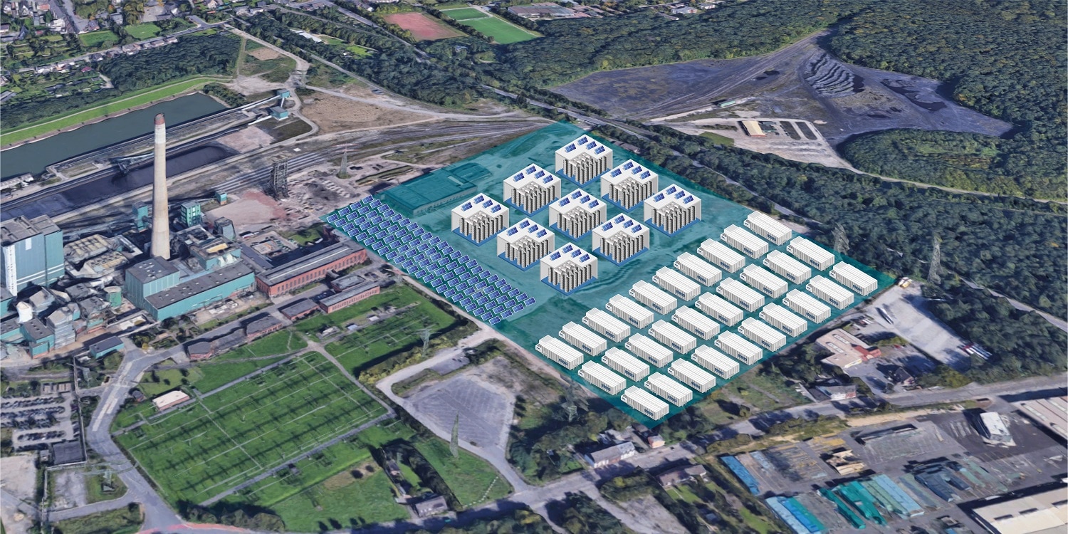 So könnte das Wasserstoff-Projekt „HydrOxy Hub Walsum“ von Thyssenkrupp und Steag einmal aussehen – Grafik © Steag