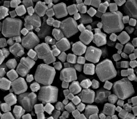 Elektronenmikroskopische Abbildung von Zeolith-A-Kristallen – Foto © Roland.chem, selbst erstellt, Public Domain, commons.wikimedia.org