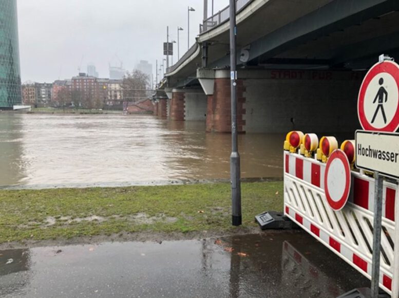 Hochwasser des Mains am 05.02.2021, Friedensbrücke Frankfurt – Foto © Franziska Vogt für Solarify