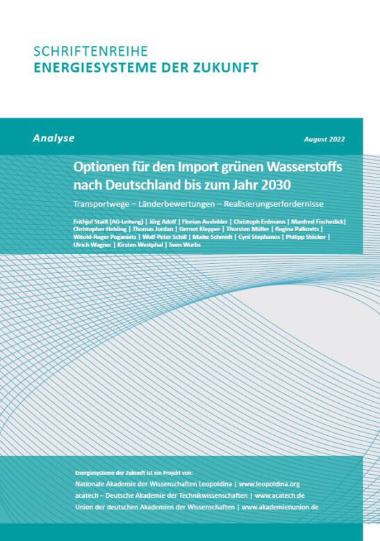 Eine Arbeitsgruppe des Akademienprojekts „Energiesysteme der Zukunft“ (ESYS) – einer vom Bundesministerium für Bildung und Forschung (BMBF) geförderten gemeinsamen Initiative von acatech, Leopoldina und Akademienunion – zeigt auf, welche Transportoptionen bestehen, und vergleicht diese anhand verschiedener Kriterien. Berechnungen zu Kosten und Energieeffizienz der jeweiligen Transportketten fließen ebenso in die Betrachtungen ein wie qualitative Kriterien, unter anderem zu Umweltwirkungen, bestehenden Infrastrukturen sowie zur politisch-rechtlichen Umsetzbarkeit.
