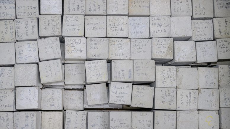 Nach der Aufbereitung haben die Wissenschaftler*innen verschiedene Rezepturen hergestellt. „Wir haben Zusammensetzungen mit Blick auf Faktoren wie Verarbeitbarkeit und Druckfestigkeit variiert und die Rezeptur sukzessive angepasst“, so Siebert. So sei eine Mischung entstanden, bei der im Vergleich zu herkömmlichen Standardrezepturen etwa die Hälfte des darin enthaltenen Kieses durch aufbereitete MV-Asche ersetzt werde.