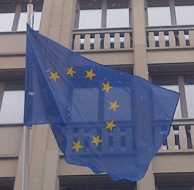 EU-Fahne an EU-Vertretung Berlin – Foto © Gerhard Hofmann, Agentur Zukunft, für Solarify