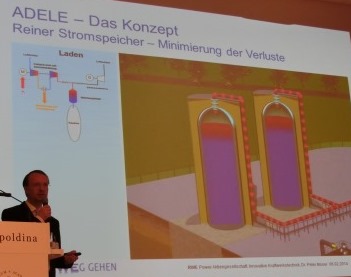 Den sogenannten adiabaten Druckluftspeicher ADELE stellte Peter Moser, RWE, vor. Zehn technische Verfahrensvarianten seien verglichen und daraus drei ausgewählt worden. Man habe das technische Ziel erreicht. Wirtschaftlich hätten jedoch drei Strompreisreihen ergeben, dass die Renditen nicht ausreichten, um Kapitalkosten zu decken. Es sei kein Geld damit zu verdienen. Das gelte für alle nicht subventionierten Stromspeicher. Die Risiken für die Errichtung einer „first-of-its-kind“-Demonstrationsanlage seien angesichts des derzeitigen Strompreisniveaus denn auch zu hoch.