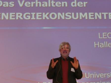 Robert Schlögl, Direktor am Fritz-Haber-Institut der Max-Planck-Gesellschaft Berlin, wissenschaftlier Koordinator der Tagung, dankte Haseloff – wenn alle das Problem so durchdächten, sei „ihm um die Energiewende nicht bange“. Energie stelle ab auf Teilhabe, die aber setze Information voraus – Vermittlung der Inhalte schaffe Verständnis. Daher kümmere sich die Nationale Akademie um diese Aufgabe. Deren Präsident Hacker hatte bei seiner Begrüßung darauf hingewiesen, dass die Leopoldina sich dessen vertieft angenommen habe. Schlögl weiter: Teilhabe setze voraus, „dass wir wissen, was wir wollen“. Dabei seien „Speicher nicht nur technisch zu verstehen – sondern auch als Speicher von Wissen. Wir haben die Verpflichtung, dieses Wissen für unsere Nachkommen zu generieren und aufzuheben.“ In einem etwas kühnen Vergleich nannte Schlögl abschließend „das Energie-System in etwa das Rentensystem der Wirtschaft unseres Landes, es ist sicher besser, heute Einzahlungen in dieses System zu machen.“