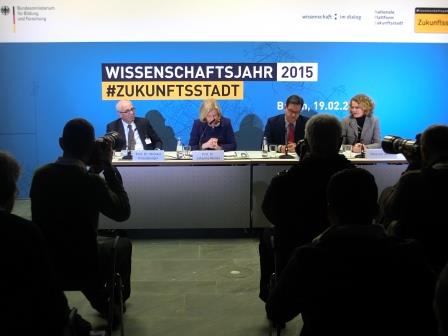 Teil des Wissenschaftsjahres ist daher der Wettbewerb Zukunftsstadt, den das BMBF ausgerufen hat. Damit sollen bis zu 50 Kommunen dabei unterstützt werden, gemeinsam mit Bürgerinnen und Bürgern und der Wissenschaft eine nachhaltige und ganzheitliche Vision für ihre Stadt, ihren Stadtteil oder ihren Landkreis zu entwickeln. Mit bis zu 35.000 Euro pro Stadt soll so der Dialog und die Moderation zwischen Verwaltung, Bürgern und Wissenschaft finanziert werden. Das Interesse der Kommunen ist groß. Bewerbungen wurden bereits aus den Städten München, Bonn, Ludwigsburg, Bottrop, Halle (Saale), aber auch kleineren Städten und Landkreisen wie Oer-Erkenschwick oder dem Landkreis Harz angekündigt. Die Auswahl wird im April erfolgen.
