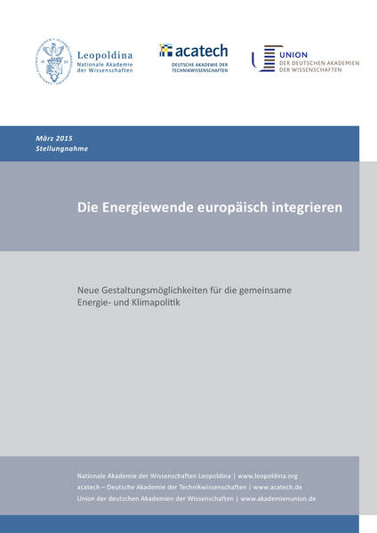 Ein Preiskorridor mit Mindest- (und Höchst-)Preisen für CO2 einführen anstelle nationaler Fördermaßnahmen, das ETS auf Mobilität und Wärme ausweiten – oder, wenn das nicht geht, eine europäisch verzahnte Förderung der Erneuerbaren Energien erreichen – das sind die zentralen Vorschläge der am 25.03.2015 veröffentlichten Stellungnahme der Ad-hoc-Gruppe „Intergration“ Die Energiewende europäisch integrieren von ESYS (Energiesysteme der Zukunft, des Akademieprojekts von acatech – Deutsche Akademie der Technikwissenschaften, der Nationalen Akademie der Wissenschaften Leopoldina und der Union der deutschen Akademien der Wissenschaften).