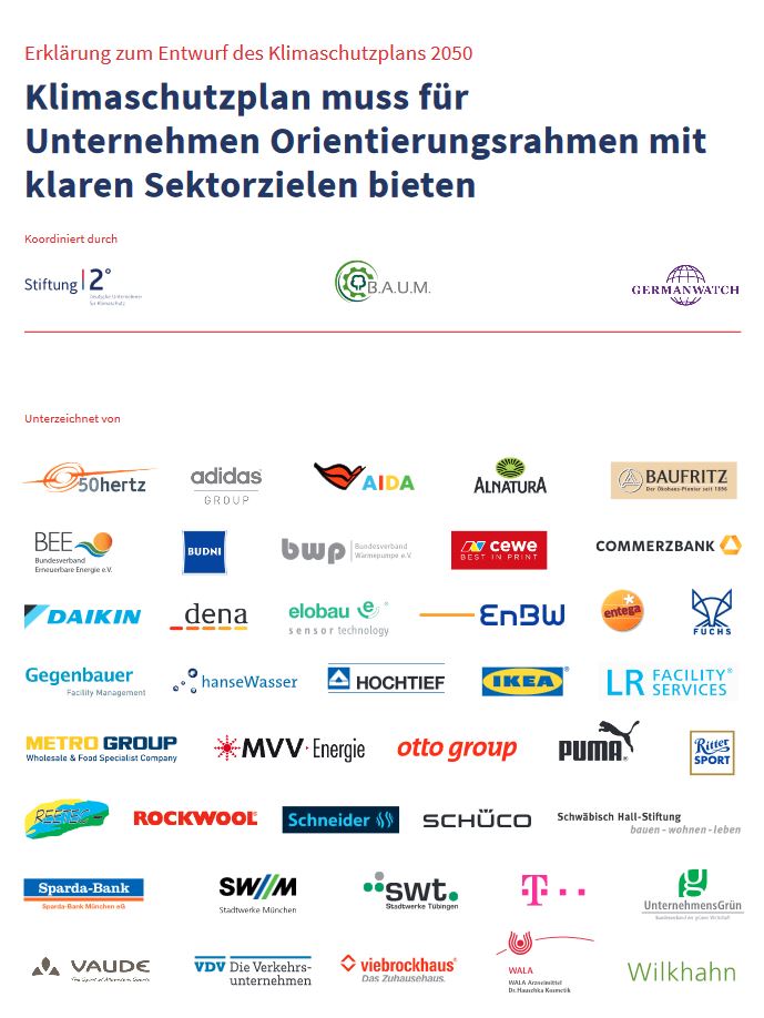 Erklärung zum Entwurf des Klimaschutzplans 2050