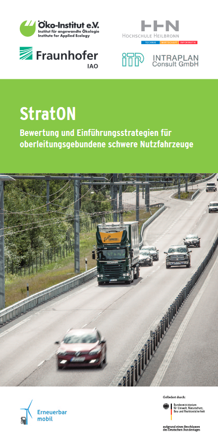 Im Rahmen des Förderprogramms „Erneuerbar Mobil“ des Bundesministeriums für Umwelt, Naturschutz, Bau und Reaktorsicherheit untersucht das Projektteam von StratON, wie der Straßengüterfernverkehr mit Hilfe von Oberleitungen entlang der Autobahn elektrisch betrieben werden kann. Dabei werden die Oberleitungs-LKW auch im Vergleich zu möglichen alternativen Antriebs- und Energieversorgungsoptionen wie etwa wasserstoffbetriebene Brennstoffzellenfahrzeuge bewertet. Zudem betrachten die Wissenschaftler neben den Kosten auch die Treibhausgasemissionen, den Ressourcenbedarf und die Wechselwirkungen mit dem Energiesektor.