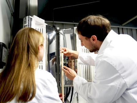 Einbau einer Hochtemperaturfestoxidzellen-Probe in Teststand 1 – Foto © Forschungszentrum Jülich, Regine Panknin