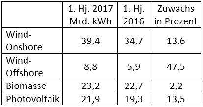 Erneuerbar Energien 1.Hj. 2017, 2.Teil – Tabelle © Gerhard Hofmann, Agentur Zukunft für Solarify