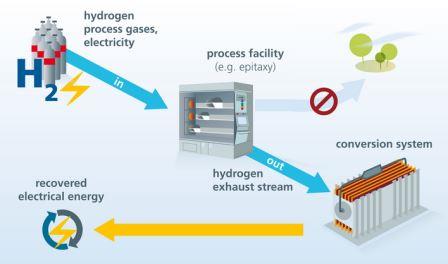 Am Fraunhofer IISB (Fraunhofer Institute for Integrated Systems and Device Technology IISB) in Erlangen wurde nach institutseigenen Angaben ein Verstromungssystem entwickelt, das wasserstoffreiches Abgas aus einer Halbleiterfertigungsanlage in elektrische Energie umwandelt. Das Herzstück der Verstromungsanlage ist ein modernes Brennstoffzellensystem. Den Forschern des IISB ist damit die Verstromung auch nicht-reiner wasserstoffreicher Gasgemische gelungen. Das schont Ressourcen und erhöht die Effizienz der Halbleiterproduktion.