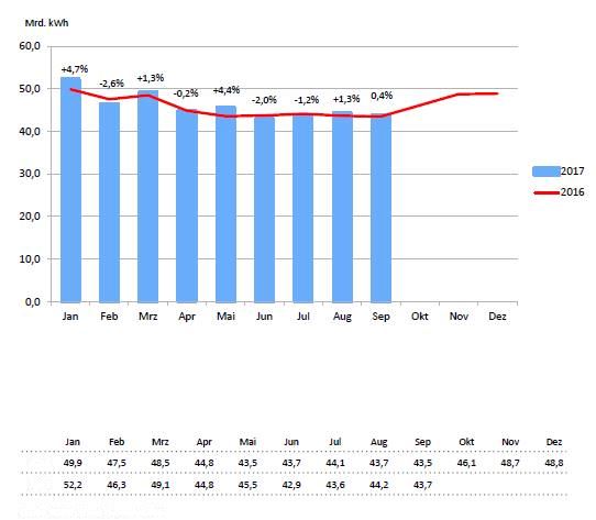 Stromverbrauch Jan-Sept. 2017 – Grafik © AGEB