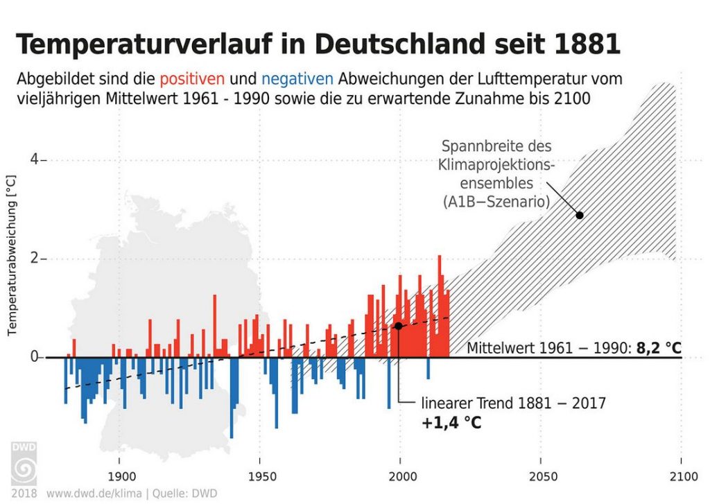 Temperaturverlauf in Deutschland seit 1881 – Grafik © 2018 www.dwd.de/klima