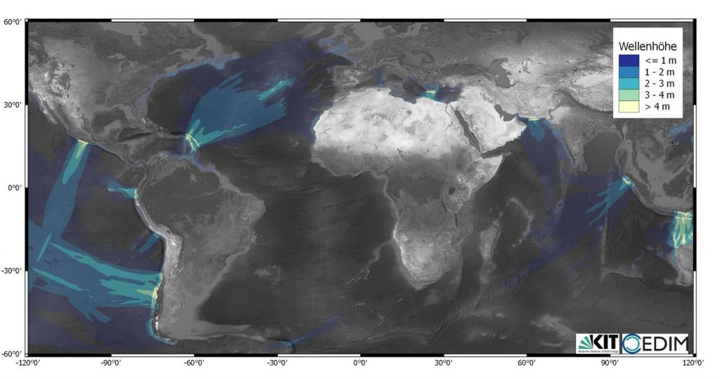 Beispiele simulierter Tsunamis und ihre maximalen Wellenhöhen – Foto © Andreas Schaefer, KIT