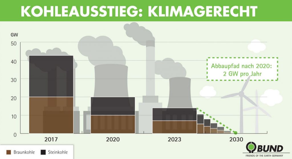 BUND-Kohleausstiegsplan im Einklang mit den Klimaschutzzielen – Grafik © BUND