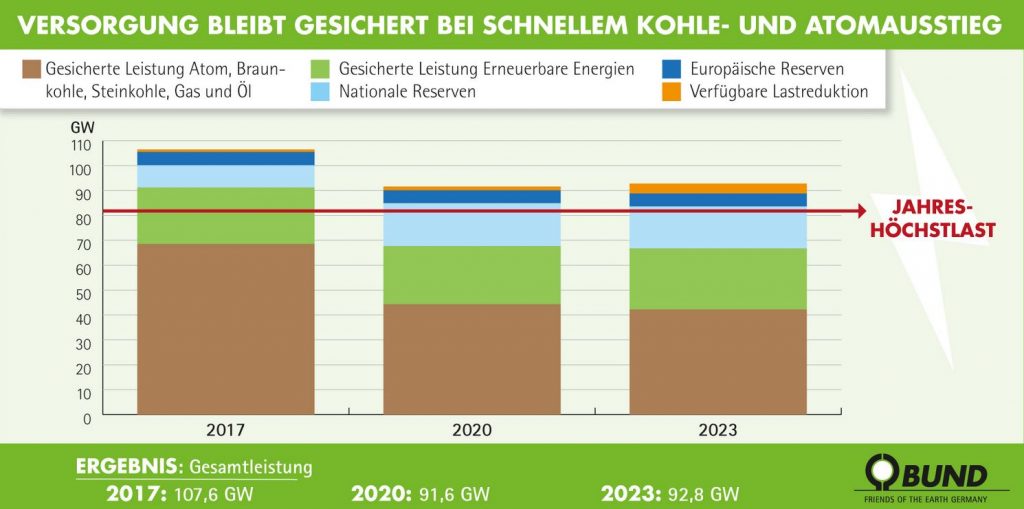 Der BUND-Abschaltplan zeige, dass das möglich sei, und dass deutlich mehr Kohlekraftwerke kurzfristig vom Netz genommen werden könnten, als bisher diskutiert werde, und dass dies auch mit einer deutlichen Beschleunigung des Atomausstiegs verbunden werden könne. Im Ergebnis gehe der Leistungsüberschuss in Deutschland zwar zurück, aber die Versorgung bleibe auch in Stunden ohne Sonne und mit wenig Wind gewährleistet, erklärte Weiger.