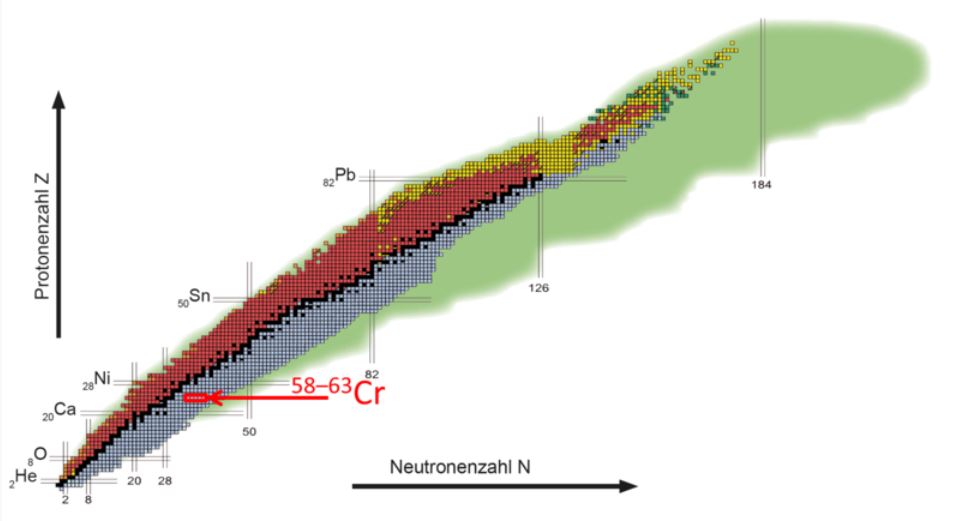 Ein wichtiger Schritt zur Erforschung bisher unbekannter Atomkerne ist einer Medienmitteilung vom 07.06.2018 zufolge Physikern des MPI für Kernphysik und der Universität Greifswald in einer internationalen Kollaboration am CERN gelungen. Sie haben die Massen von 6 neutronenreichen Chrom-Isotopen mit bisher unerreichter Präzision bestimmt. Im Zusammenspiel mit theoretischen Kernphysikern der TU Darmstadt können neue Vielteilchenrechnungen getestet werden. Daraus ergeben sich wichtige Erkenntnisse zur Stabilität dieser exotischen Kerne, die auch für astrophysikalische Prozesse bei der Entstehung schwerer Elemente von Bedeutung sind – publiziert in Physical Review Letters, 06.06.2018.