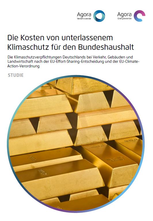 Deutschland hat sich in Abstimmung mit den anderen EU-Mitgliedstaaten dazu verpflichtet, die CO2-Emmissionen von Gebäuden, Verkehr und Landwirtschaft deutlich zu mindern. Die europarechtlich verbindlichen Ziele werden ohne Trendumkehr in jedem der kommenden Jahre weit verfehlt werden. Um die Defizite auszugleichen, muss Deutschland bis 2030 für bis zu 60 Milliarden Euro Emissionszertifikate (siehe solarify.eu/emissions-handel) von anderen EU-Ländern zukaufen. Sinnvoller wäre es, Klimaschutzmaßnahmen in Deutschland voranzubringen und so auch Wachstum und Innovationen zu fördern – so eine gemeinsame Untersuchung der Thinktanks Agora Energiewende und Agora Verkehrswende unter dem Titel Die Kosten von unterlassenem Klimaschutz für den Bundeshaushalt.