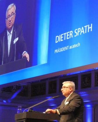 acatech versteht sich als Arbeitsakademie, die Nutzen stiften möchte. Deshalb stand die Zukunft im Mittelpunkt der Festveranstaltung. Präsident Dieter Spath sagte: „Wir hatten zehn bewegte Jahre, in deren Verlauf wir Zukunftsprojekte wie Industrie 4.0, Smart Services und Lernende Systeme entwickelt, das Akademienprojekt Energiesysteme der Zukunft gegründet und die Innovationsdialoge der Bundesregierung vorbereitet haben. Doch darauf wollen wir uns nicht ausruhen.“ Gesellschaftliche, politische und ökologische Entwicklungen seien eng mit Technologien verbunden. Als Beispiel nannte Dieter Spath die Digitalisierung. Sie verändere den privaten Alltag und unsere Arbeitswelten: „Die Digitalisierung ermöglicht neue Formen der Arbeit, die wir gemeinsam gestalten können. Dabei wird es nicht darum gehen mehr oder weniger zu arbeiten, sondern selbstbestimmter, produktiver und besser.“