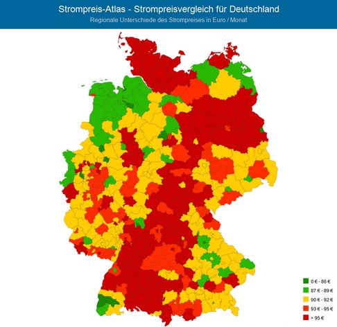 zu 2: Atlas für Strompreise zeigt regionale Preisunterschiede