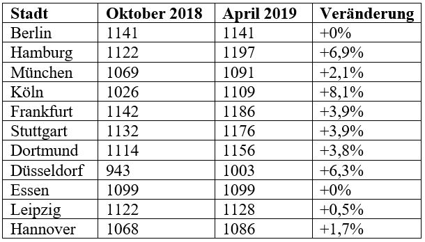 Betrachtet man die Strompreise der 20 größten Städte in Deutschland, so ergibt sich folgendes Bild: