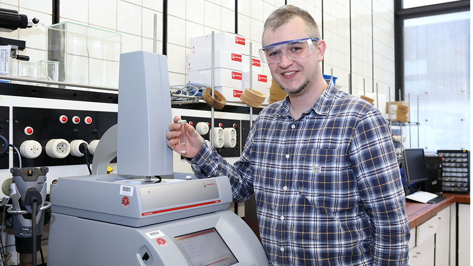 Serrano ist ihr schon lange auf der Spur: dieser farblosen, klaren, zähen, schwach riechenden Flüssigkeit, genannt Glyzerincarbonat. In seiner Doktorarbeit hat er untersucht, wie man mit „grüner Chemie“ diesen Stoff herstellen kann. Dazu nimmt er Glyzerin, das massenweise bei der Produktion von Biodiesel anfällt. Und verbindet es zum Beispiel mit Dimethylcarbonat, das wiederum das klimaschädliche Kohlendioxid bindet. In der Kombination entsteht ein unschädliches Lösungsmittel. Lösungsmittel braucht man überall, zum Beispiel auch in Kosmetika. Und meistens wird für die Herstellung dieser Allzweckwaffe Mineralöl verwandt.