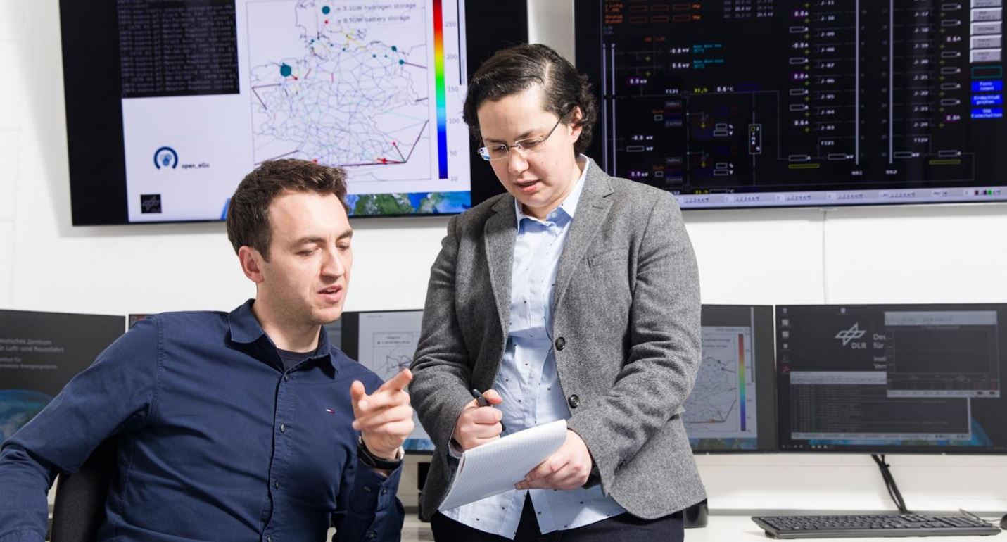 Netz- und Systemmodellierung am DLR in Oldenburg – Julian Bartels (li.) und Wided Medjroubi – Mit dem Projekt open_eGo hat das DLR gemeinsam mit seinen Projektpartnern einen frei zugänglichen Daten- und Softwarepool entwicklelt, mit dem Netzbetreiber ihre Vorhaben nicht nur aus betriebswirtschaftlicher, sondern auch aus volkswirtschaftlicher Sicht bewerten können. – Foto © DLR, CC BY 3.0