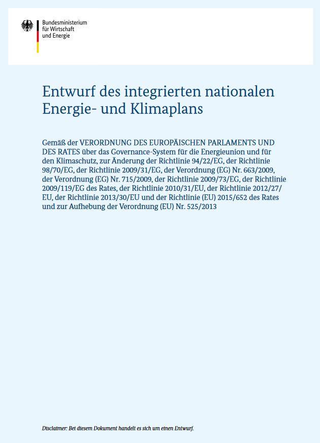 In den bis Ende 2019 zu erstellenden finalen Nationalen Energie- und Klimaplan sollen darüber hinaus die Entscheidungen des so genannten „Klimakabinetts“ sowie die Empfehlungen der Kommission „Wachstum, Strukturwandel und Beschäftigung“ zum Ausstieg aus der Kohleverstromung in Deutschland einfließen.