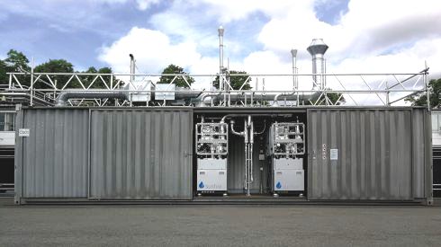 Hochtemperaturelektrolyse Container Generation 1.0 (Sunfire-HyLink) am Standort in Dresden © Sunfire GmbH