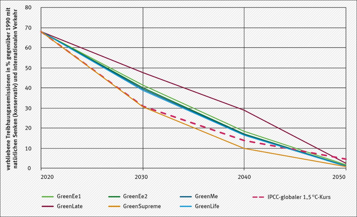 Vergleich der RESCUE-Szenarien mit dem IPCC-1,5°C-Pfad Nur das GreenSupreme-Szenario ist kompatibel – Foto © Umweltbundesamt