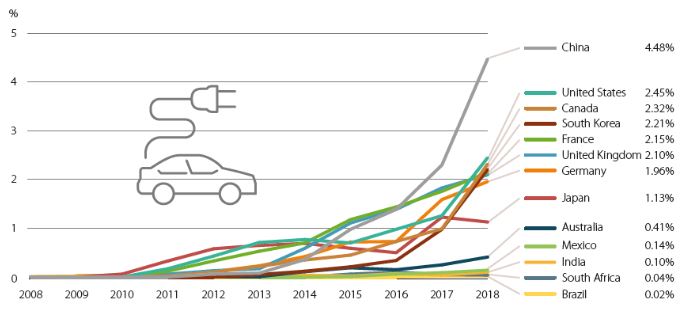 TRANSPORT: Die Transportemissionen der G20 stiegen 2018 um 1,2%; wobei die USA, Kanada und Australien die höchsten pro-Kopf Transportemissionen haben. Der Anteil von 6 % an kohlenstoffarmen Kraftstoffen im Transportmix der G20 müsste sich bis 2050 verzehnfachen, um die Erderwärmung auf 1,5°C zu reduzieren. In Kanada, Frankreich, Japan und Großbritannien gibt es langfristig progressive Pläne zum Ausstieg aus dem Verbrennungsmotor und China verkaufte im Jahr 2018 fast eine Million elektrische Fahrzeuge. Dennoch fehlt es flächendeckend an erfolgreichen politischen Strategien hin zu einem alternativen Verkehrssystem oder für eine Dekarbonisierung des Ladungsverkehrs.