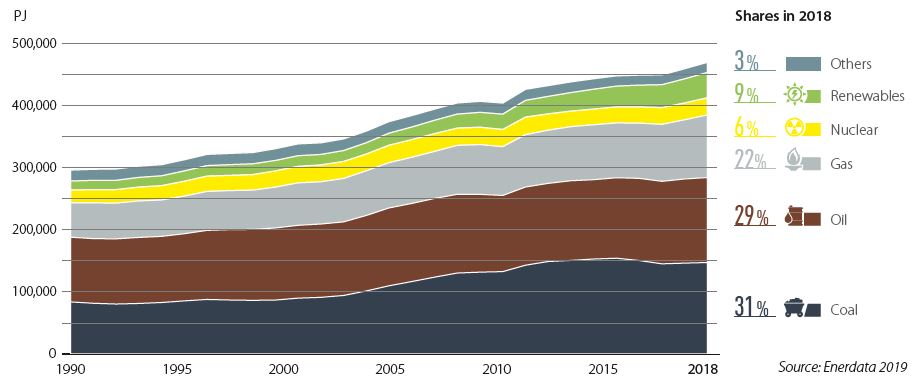 Aufgrund von starkem wirtschaftlichen Wachstum und wachsendem Energiebedarf stiegen die energiebedingten CO2-Emissionen der G20 im Jahr 2018 um 1,8 %. Die Energieversorgung auf Grundlage von Kohle, Öl und Gas stieg 2018 in mehreren Staaten weiter an. Noch immer sind 82 % des Energiemixes der G20 aus fossilen Brennstoffe. Um 1,5°C kompatibel zu sein, muss dieser Anteil in den G20 bis 2030 auf mindestens 67 %, global bis 2050 auf mindestens 33 % und darüber hinaus langfristig weiterhin sinken.Auch die Fortschritte im Bereich der Energieeffizienz verlangsamten sich in den Volkswirtschaften der G20-Länder im Jahr 2018.