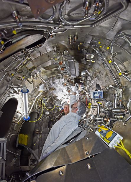 Ziel der Fusionsforschung ist es, ein klima- und umweltfreundliches Kraftwerk zu entwickeln. Ähnlich wie die Sonne soll es aus der Verschmelzung von Atomkernen Energie gewinnen. Weil das Fusionsfeuer erst bei Temperaturen über 100 Millionen Grad zündet, darf der Brennstoff – ein dünnes Wasserstoffplasma – nicht in Kontakt mit kalten Gefäßwänden kommen. Von Magnetfeldern gehalten, schwebt er nahezu berührungsfrei im Inneren einer Vakuumkammer.