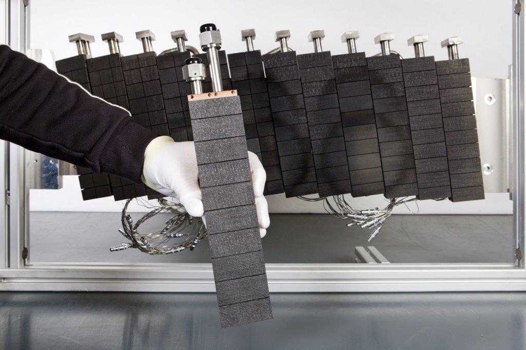 Jeder der zehn gebogenen Divertor-Streifen besteht aus zwölf dieser Platten, die sich wiederum aus Einzelelementen zusammensetzen. Insgesamt bestehen diese 890 Elemente aus fast einer halben Million Einzelteilen, von den hitzebeständigen Oberflächen bis zu den Spezialschrauben.