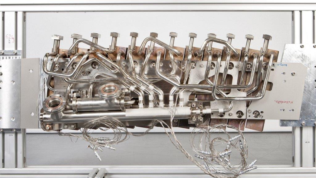 Im IPP in Garching wurden die Divertor-Elemente dann auf stählernen Rahmen zu Platten zusammengefügt. Kühlrohre und Kühlwasserverteiler wurden mit einer speziellen, im ITZ entwickelten Schweißtechnik verbunden: „Unter den 2000 Schweißnähten konnten die anschließenden Tests gerade mal zwei undichte Nähte entdecken“, sagt Boscary. Auch sonst lagen zwischen den einzelnen Arbeitsschritten immer wieder qualitätssichernde Prüfungen. Zur Produktionskontrolle wurde zum Beispiel die Belastungsfähigkeit der Teile im Garchinger Hitzeteststand GLADIS untersucht. Die bei diesem „bislang größten Hitzeschutzprojekt der Fusionsforschung“ gewonnene Erfahrung ist denn auch bis jetzt weltweit einmalig, betont Jean Boscary. Inzwischen sind alle zehn Divertor-Streifen fertiggestellt. Ein großer Teil ist bereits ausgeliefert; der letzte Transport nach Greifswald steht kurz bevor.