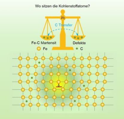 Kohlenstoffatome spielen für die Festigkeit von Stahl eine wichtige Rolle. Doch auch in Stählen, die schon seit Jahrzehnten im Einsatz sind, war das kollektive Verhalten dieser Atome bisher nicht vollständig verstanden. Eine gemeinsame Arbeit an der Ruhr-Universität Bochum (RUB) und dem Max-Planck-Institut für Eisenforschung (MPIE) in Düsseldorf hat Licht ins Dunkel gebracht: Das Wechselspiel zwischen den Kohlenstoffatomen, den durch sie verursachten Verzerrungen des Kristallgitters und den Gitterbaufehlern im Stahl ist für die energetischen Vorlieben der einzelnen Kohlenstoffatome entscheidend. Mit diesem Verständnis lässt sich die Herstellung von hochfesten Werkstoffen genauer steuern. Darüber berichtetr Nature Materials am 04.05.2020.