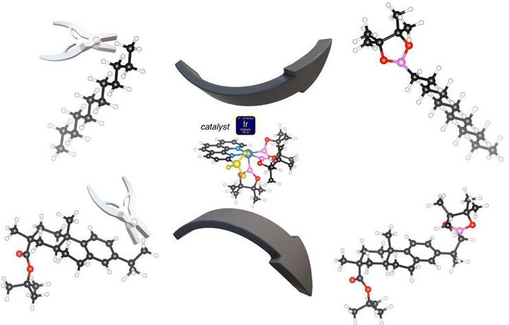 Um die Nützlichkeit der katalytischen Reaktion zu beweisen, verwendeten Bo Su, Postdoc der UC Berkeley, und seine Mitarbeiter im Labor sie, um eine Borverbindung oder Boran zu einem terminalen oder primären Kohlenstoffatom in 63 verschiedenen Molekülstrukturen hinzuzufügen. Das Boran kann dann gegen eine beliebige Anzahl von chemischen Gruppen ausgetauscht werden. Die Reaktion zielt speziell auf terminale C-H-Bindungen ab, funktioniert aber auch an anderen C-H-Bindungen, wenn ein Molekül kein terminales C-H hat.