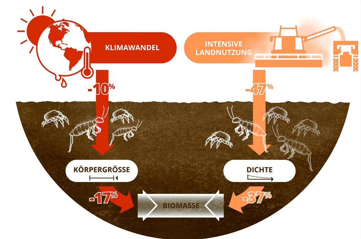 Durch den Klimawandel werden Bodentiere kleiner, durch eine intensive Landnutzung weniger