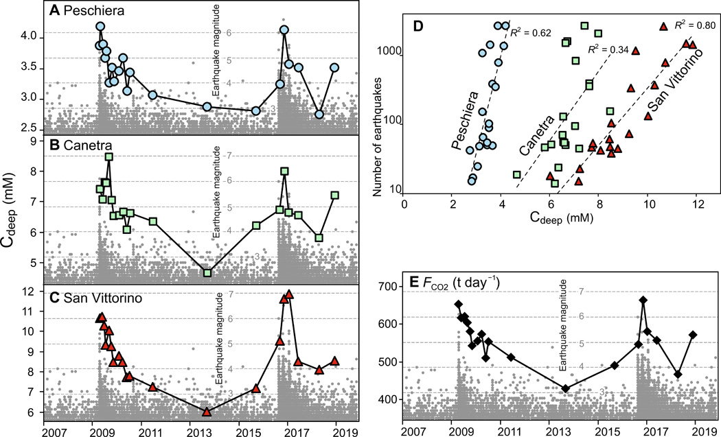 Chiodini und Cardellini referieren die bisherige Forschung: Der Zusammenhang zwischen Erdbebenanfälligkeit und Flüssigkeitskreislauf sei unter Berücksichtigung sowohl der potenziellen Rolle tiefer Flüssigkeiten bei der Erdbebenentstehung als auch der engen räumlichen Korrelation zwischen seismischen Zonen und Gebieten mit tiefer Flüssigkeitseinleitung 2013 und 2018 wissenschaftlich nachgewiesen. Zudem sei die Rolle von tiefen Strömungen bei der Auslösung von Erdbeben in verschiedenen tektonischen Umgebungen erkannt worden. Schließlich sei die Beteiligung von CO2-reichen Fluiden an seismischen Sequenzen ebenfalls nachgewiesen, weiter eine weltweite räumliche Korrespondenz zwischen seismisch aktiven Gebieten und CO2-Emissionen sowie die primäre Rolle der Dehnungs-Tektonik bei der Emission von CO2. Die wenigen gemessenen Fälle, Zentral-Süditalien und der ostafrikanische Graben, wiesen auf die globale Relevanz tektonischer CO2-Flüsse hin, von denen man annehme, dass sie die CO2-Konzentration der Atmosphäre und damit das Klima mitbestimmt hätten.