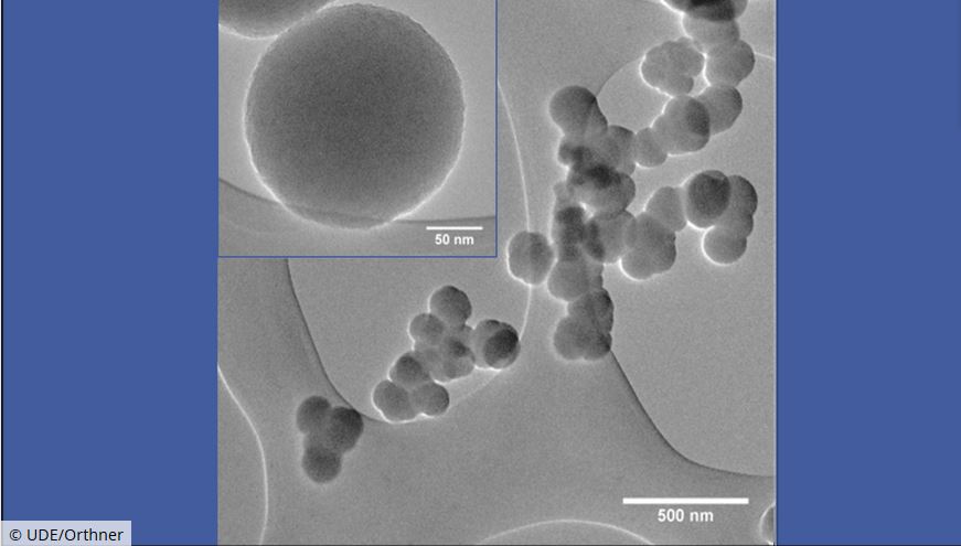 Amorphe Silizium/Kohlenstoff-Partikel – Aufnahme aus einem Transmissions-Elektronenmikroskop – Foto © UDE, Orthner