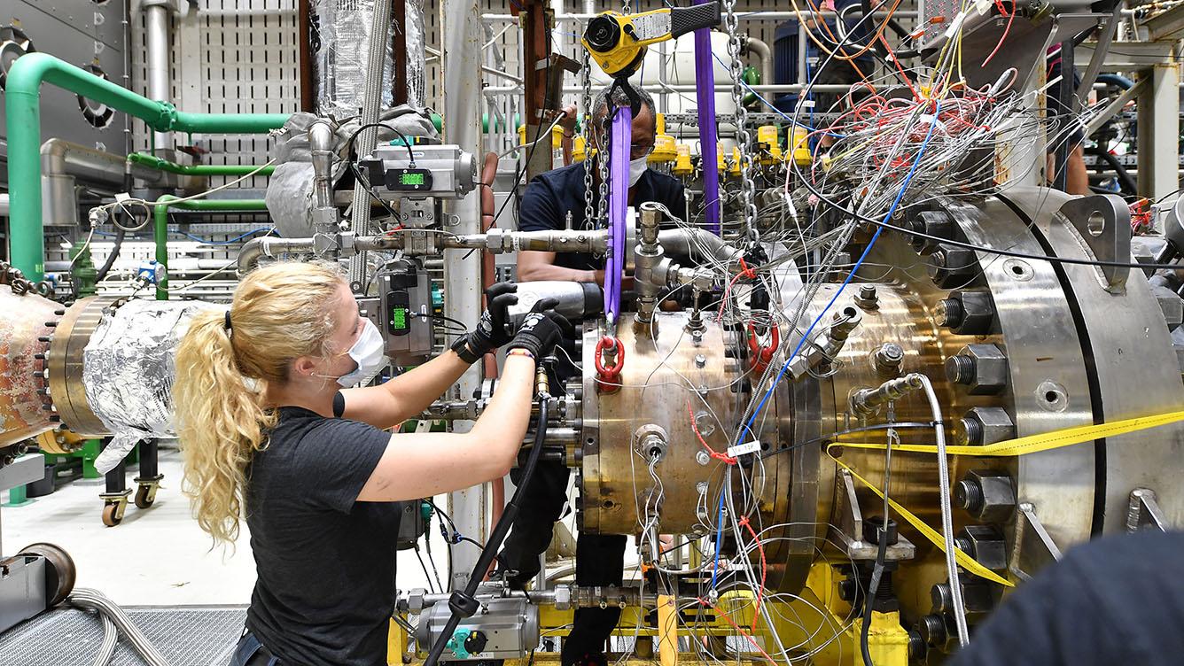 Verlässliche und umweltfreundliche Kraftwerke sollen die Stromversorgung sicherstellen. Deshalb entwickelt das DLR an seinen Kölner Prüfständen gemeinsam mit Partnern aus der Industrie die Technologie für Wasserstoffkraftwerke weiter. Ziel ist eine Infrastruktur zur Forschung und Erprobung von kritischen Kraftwerkskomponenten mit den Schwerpunkten: Energie, Klima, Wasserstoff.