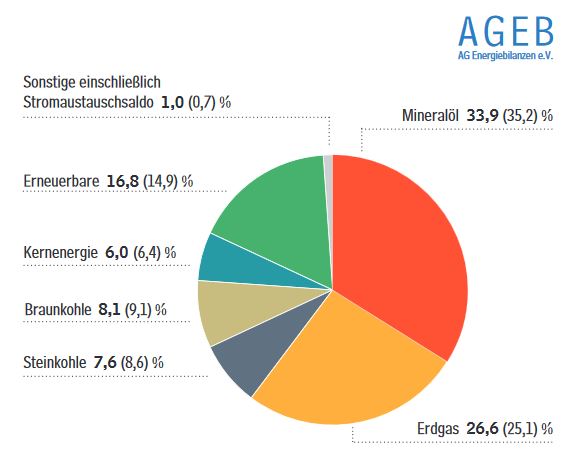 Die Anteile der verschiedenen Energieträger im nationalen Energiemix haben sich 2020 bei insgesamt deutlich geringerem Gesamtverbrauch leicht zugunsten der Erneuerbaren sowie des Erdgases verschoben. Bei Stein- und Braunkohle kam es zu weiteren Abnahmen. Mineralöl bleibt trotz eines leicht verringerten Anteils der mit Abstand wichtigste Energieträger. Kennzeichnend für die deutsche Energieversorgung bleibt ein breiter Energiemix.