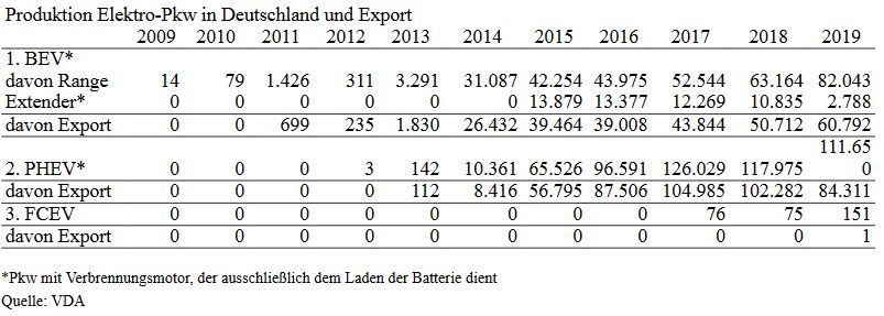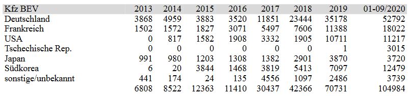 Importierte E-Autos in D – Tabelle © KBA, VDA